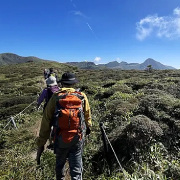 5/16。九重連山の久住山を目指します。JR西大分駅、JR別府駅、別府港が集合場所です。